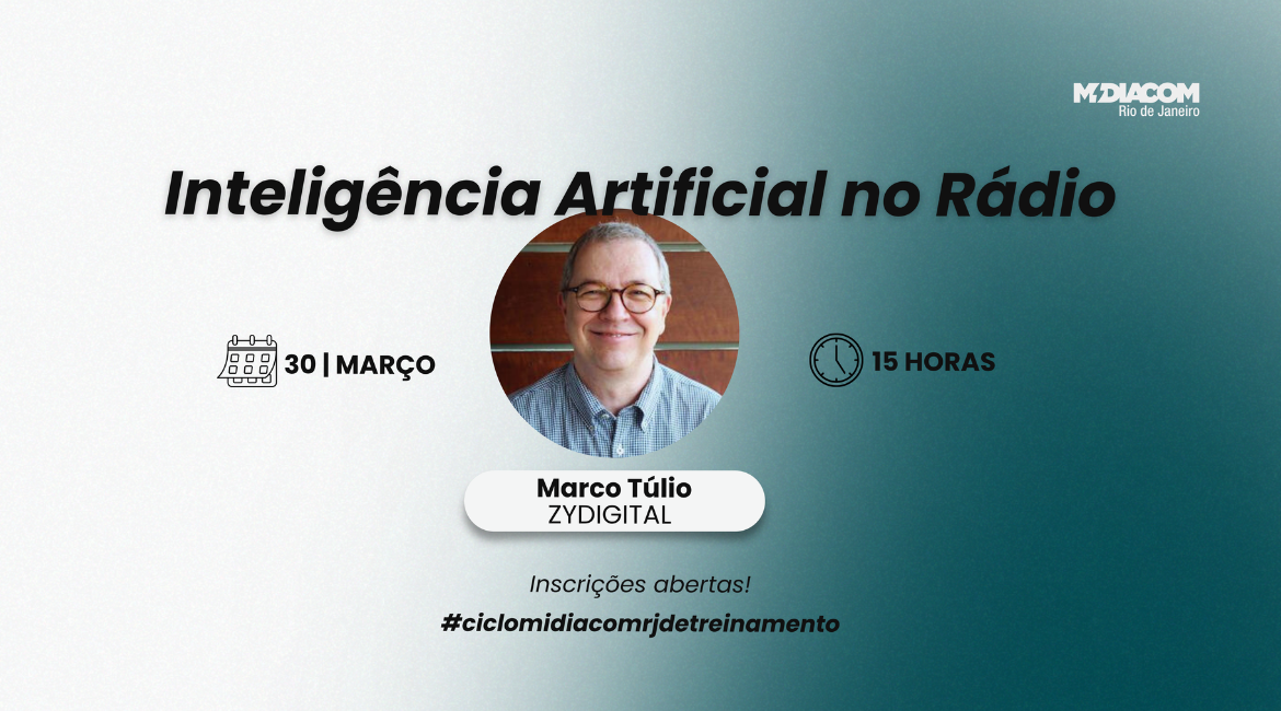 Pensando nisso, o MIDIACOM-RJ promove, no próximo dia 30 de março, às 15h, uma aula magna online sobre Inteligência Artificial no Rádio.