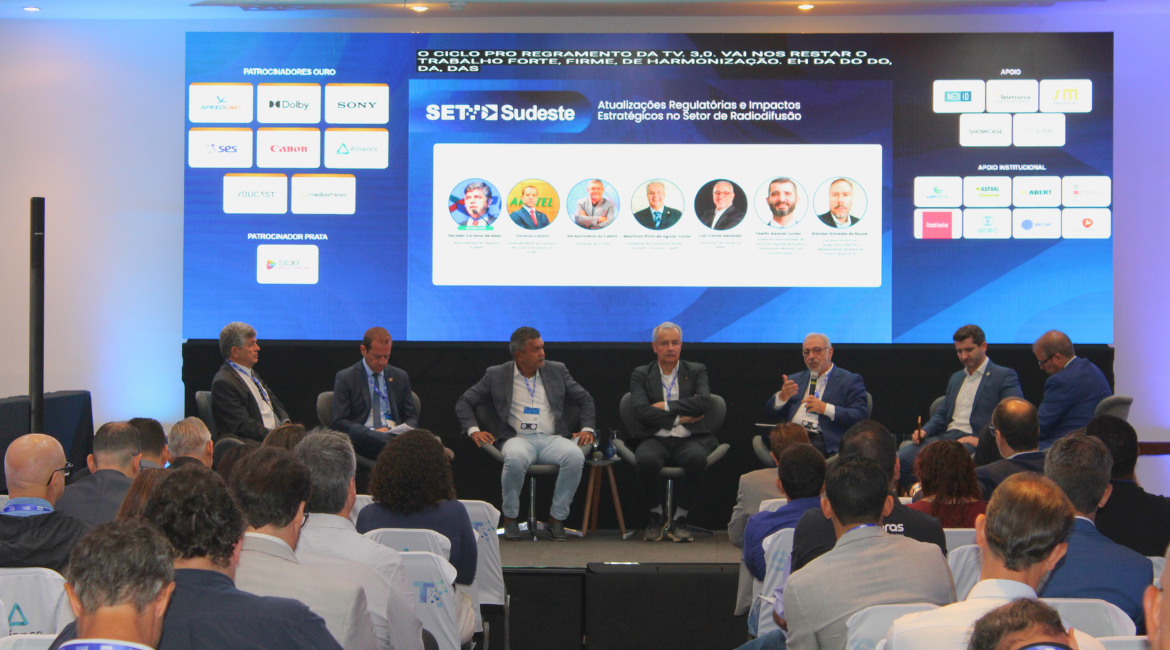 O SET Sudeste 2026 reafirmou seu papel como espaço de diálogo, articulação e construção coletiva para o futuro do mercado audiovisual brasileiro, unindo inovação tecnológica, segurança regulatória e sustentabilidade de negócios, contando com a presença de representantes da ABER, Abratel, Grupo Globo, TV Record, Itatiaia, TV Alterosa e outros.